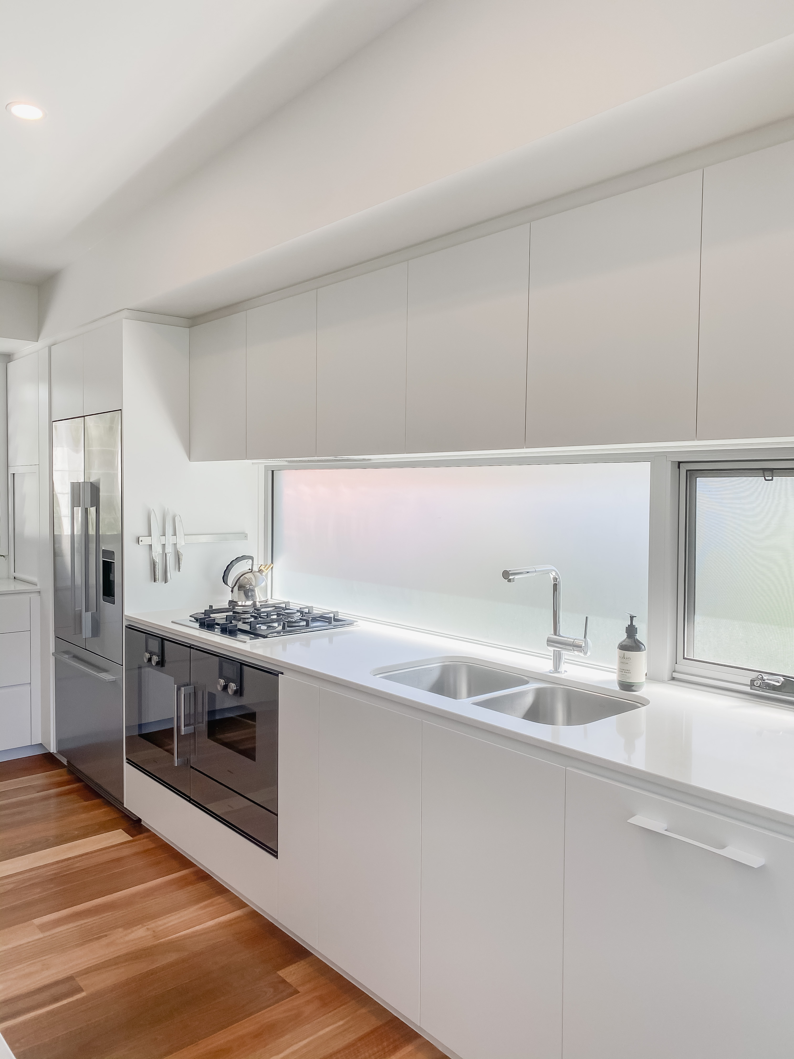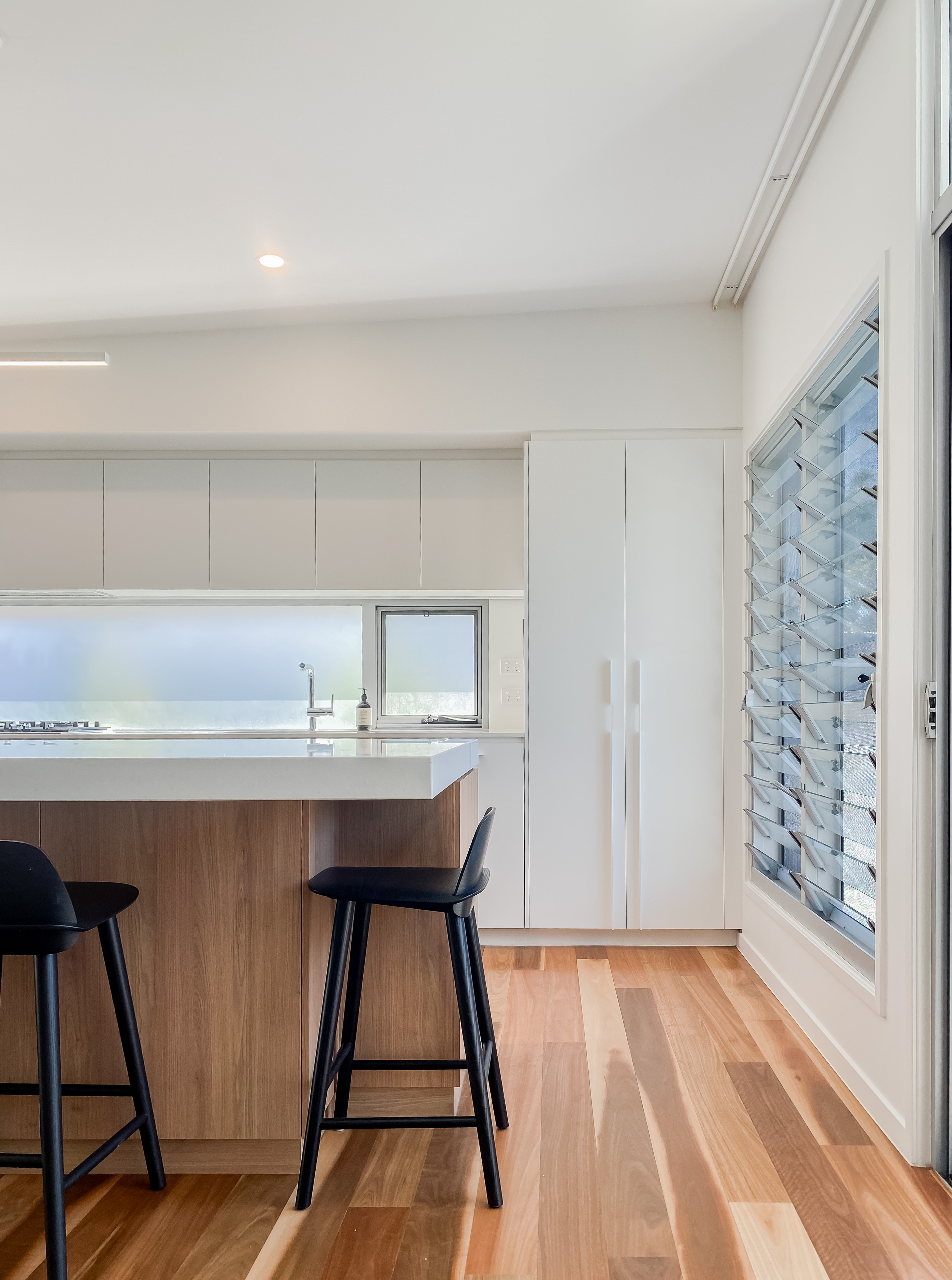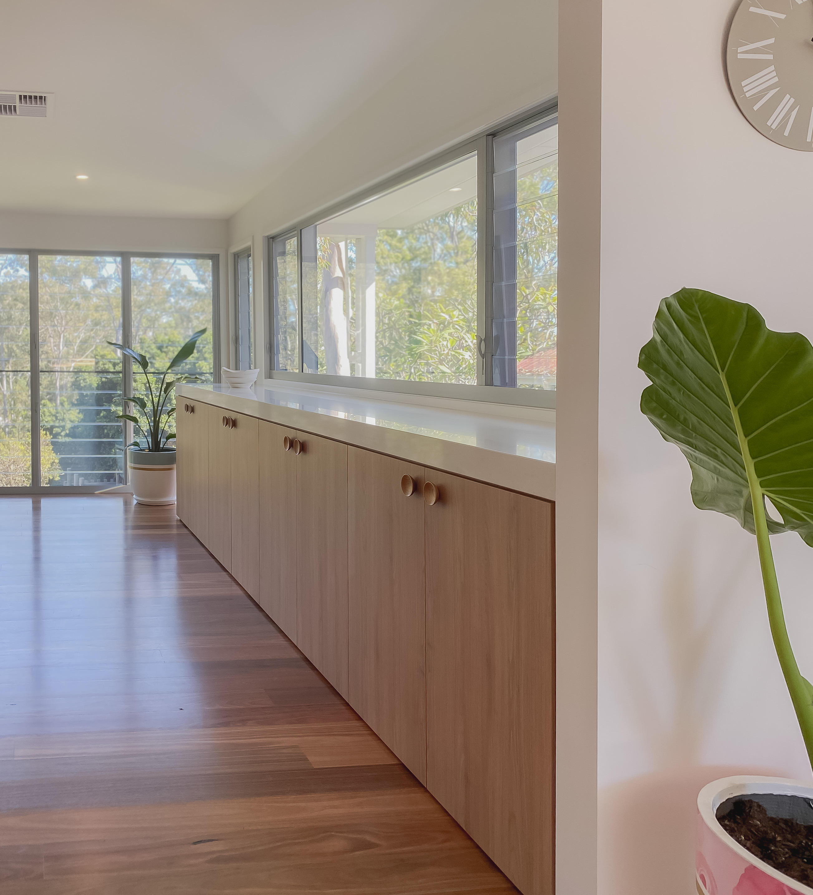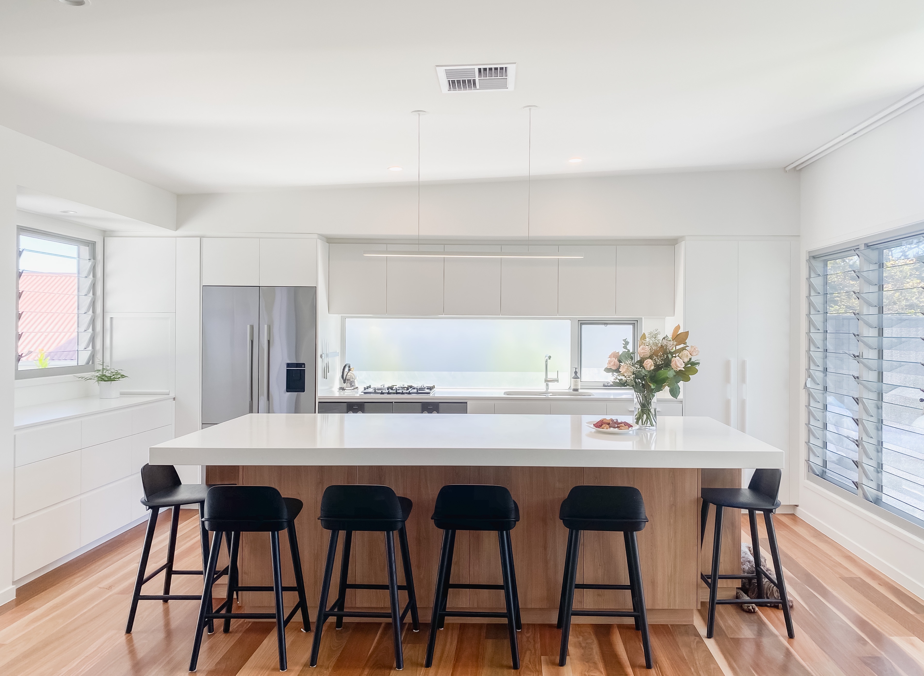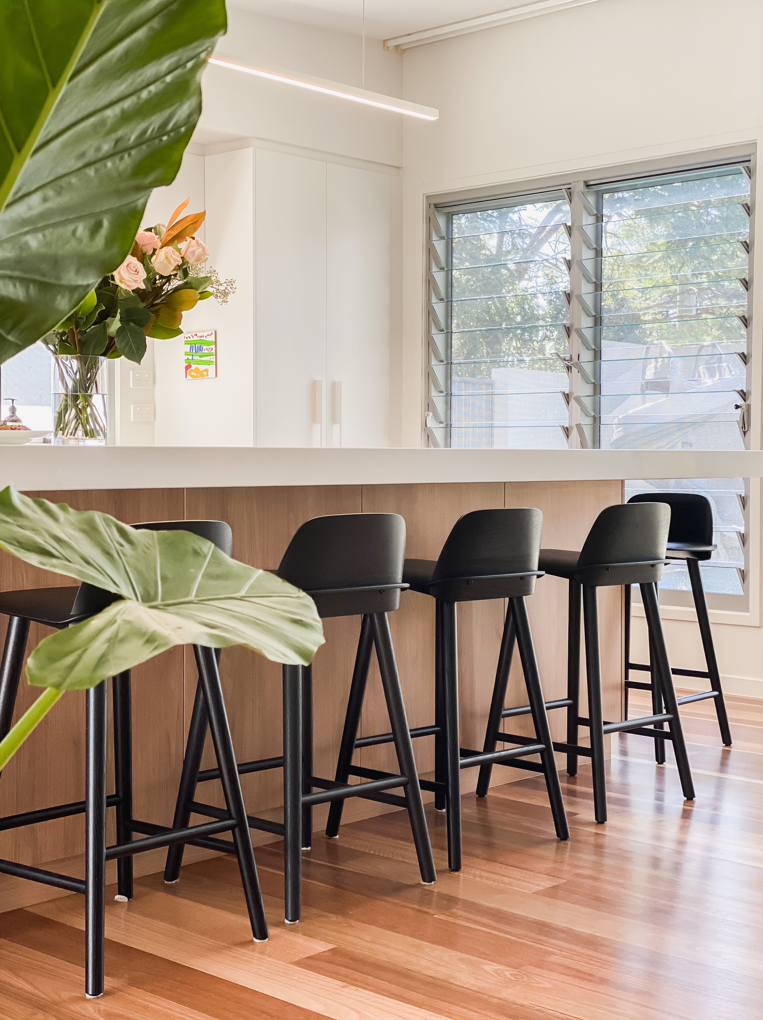 A 2020 project enclosing an existing deck to create a second light filled dining/living space, and outdoor room on the ground floor. The project also encompassed a new kitchen and an update of existing living areas and guest powder room with new feature lighting installed throughout.