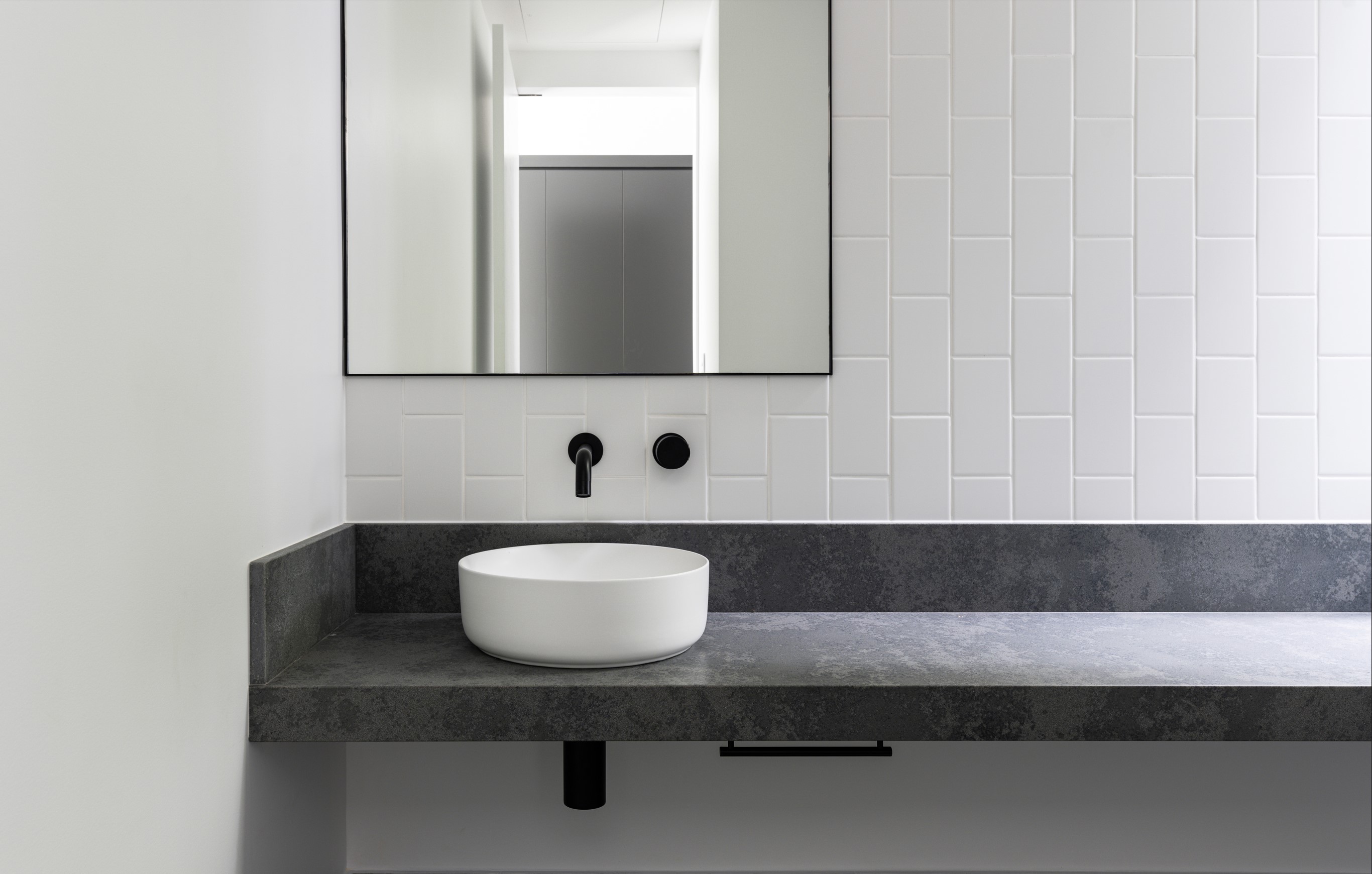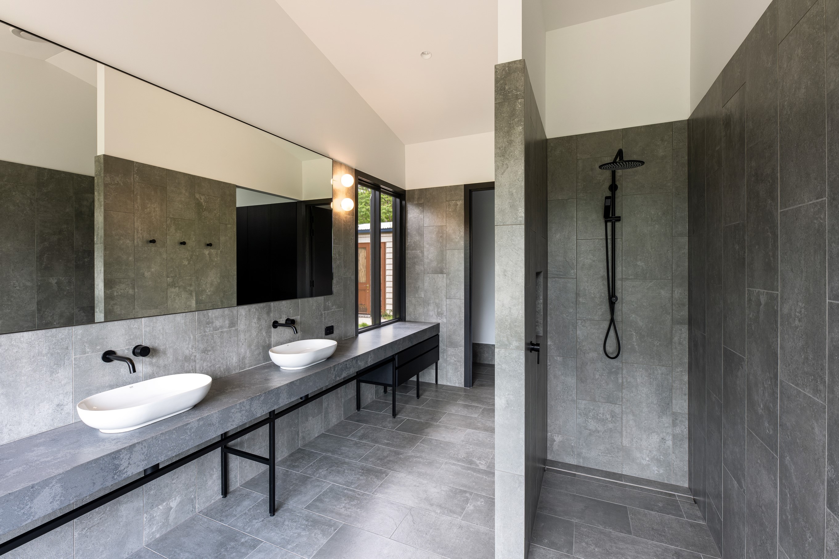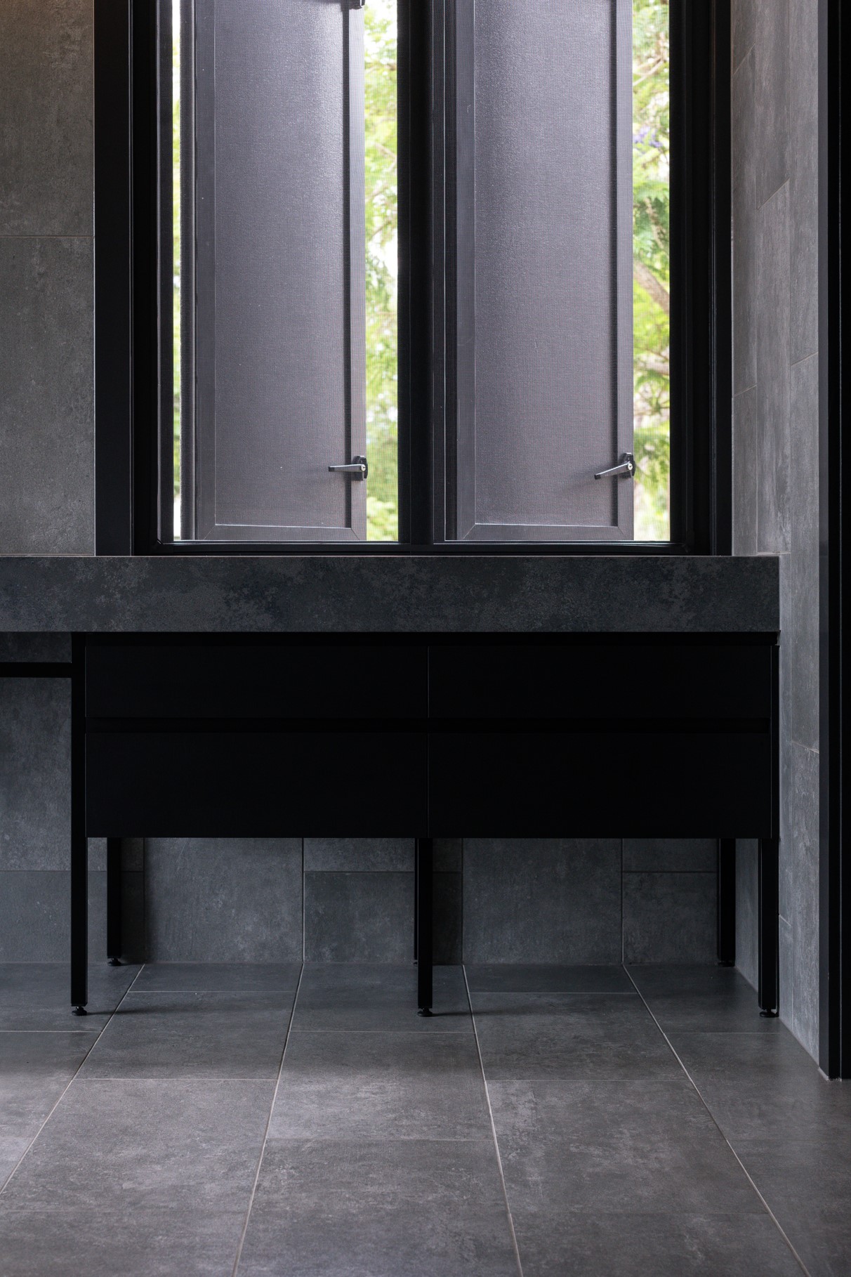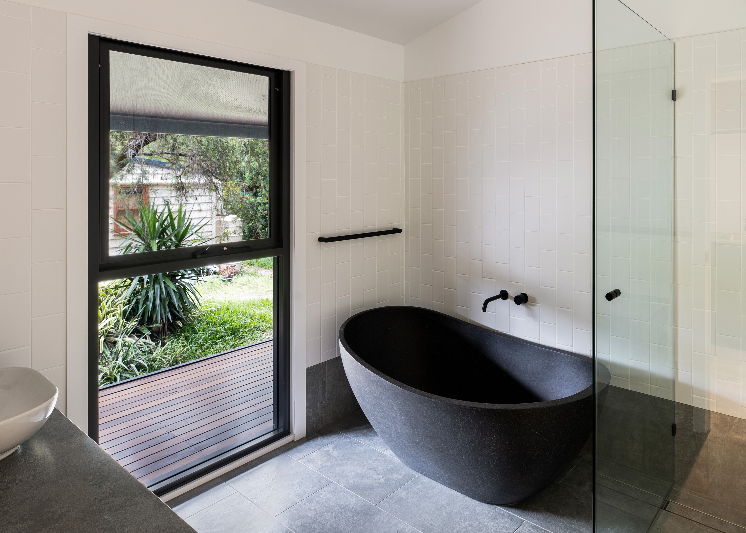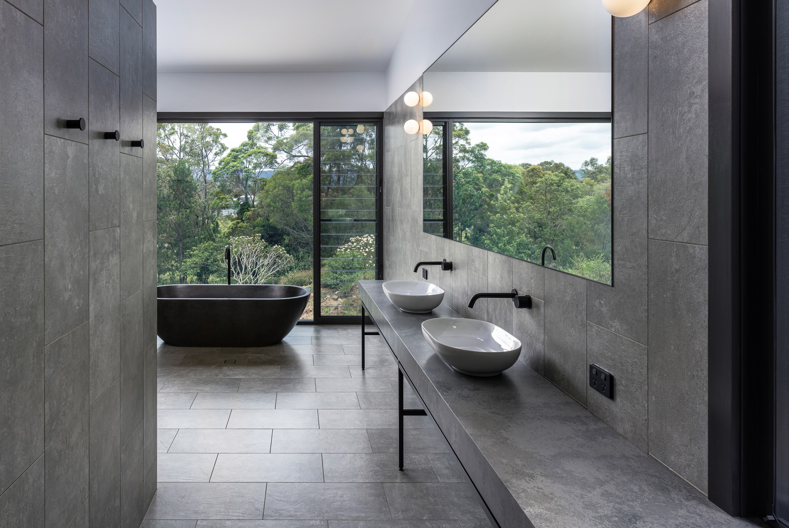 An extension and renovation of a small cottage in Samford Valley. Two extensions were added to the existing cottage, a master suite wing, and kitchen/living/dining wing more than tripling the footprint of the home. The extensions were large scale, with burnished concrete floors, high ceilings, dark joinery and big windows taking in the lush surrounding gardens and views. Completed 2022.